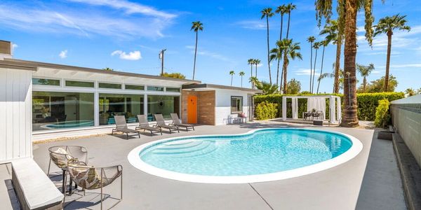 1953 modernist delight in South Palm Springs! VIEWS, LOCATION, and a carefully curated REMODEL! Perfectly positioned at Tahquitz River Estates, this walled + private 4-bedroom, 3-bath mid-century channels the MAGIC of a post-war Trousdale rancher with its post and beam design, original block walls, and perfect pool with outdoor shower.