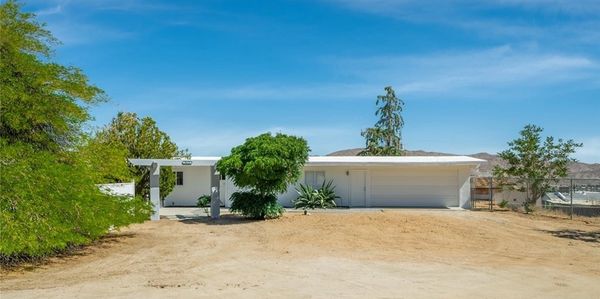 This turnkey, classic mid century Joshua Tree home has been restored to its full glory and ready for you to move in! A large and lovely 4 bedroom, 1 bathroom home sits on a very private oversized lot full of indigenous desert vegetation. With quick and easy access from a paved road you?ll find yourself very pleased with easy access to town but enjoy the peace and calm offered on this property. The smooth polished concrete floors offer a clean and sleek look that ties in seamlessly with the modern vintage vibe. The striking red wood burning fireplace is perfectly accented with the white wood ceiling.