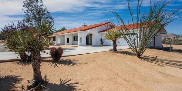Newly updated Joshua Tree home ready primed and ready for you! This open concept home greets you with mediterranean style arches that adorn the front patio and accent front door. The clean and modern interior features cool grey tile flooring, freshly painted crisp white walls and sleek chrome and black ceiling fans. The living room is anchored with a gas fireplace with slate tile edifice and a large picture window that faces south. You’ll be drawn into the immaculate kitchen with its white cabinets, recessed lighting, stainless steel appliances, quartz counter tops and eat up bar area.